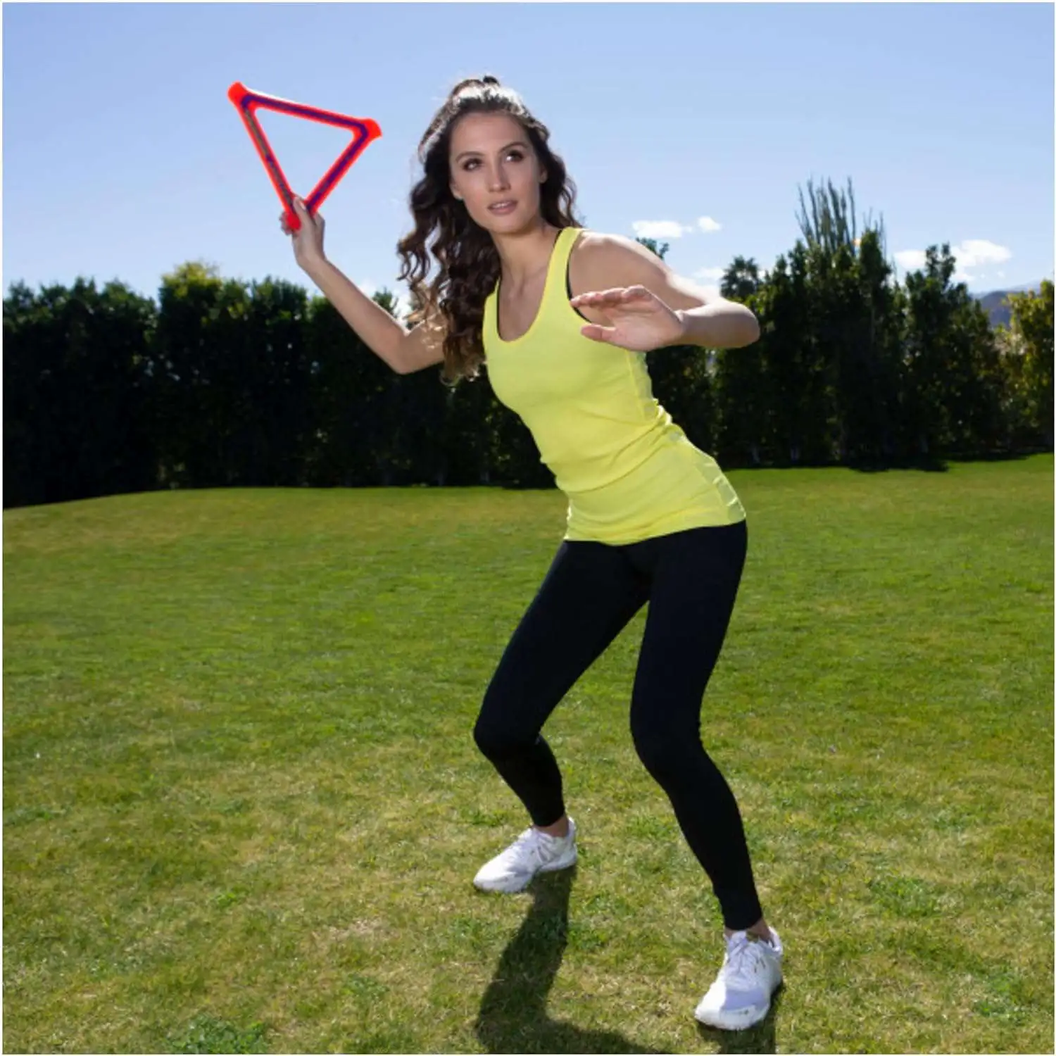 - The Aerobie Orbiter Boomerang flies through the air up to 90 feet before it comes back!