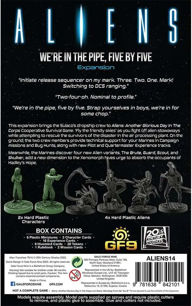 This expansion brings the Sulaco's dropship crew to Aliens: Another Glorious Day in the Corps cooperative survival game. Fly the friendly skies as you fight off alien stowaways while attempting to rescue the survivors of the disaster in the air processing plant. On the ground, the two crew members provide technical support for your Marines in Campaign missions and Bug Hunts, along with new pilot and quartermaster experience tracks.