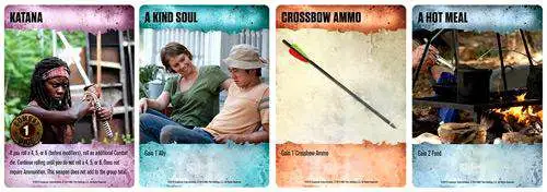 each Location there is a Resource deck of 25 cards: Equipment, Allies, Food,