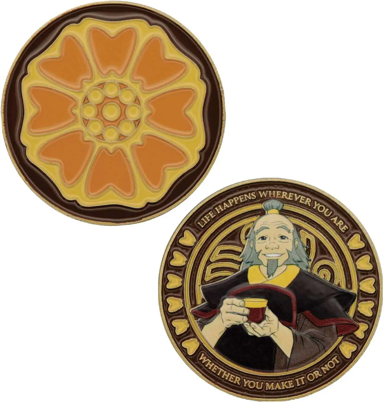 - This limited-edition collectible coin celebrates the White Lotus society from Avatar: The Last Airbender, featuring heavily embossed designs with vibrant enamel detailing. The face displays the emblem of the secret society, while the reverse depicts General Iroh, a prominent member. Crafted with intricate craftsmanship, each coin is individually numbered and housed in a protective acrylic case. Limited to only 5,000 pieces worldwide, this highly detailed, double-sided coin is a must-have collectible for fans and collectors alike.