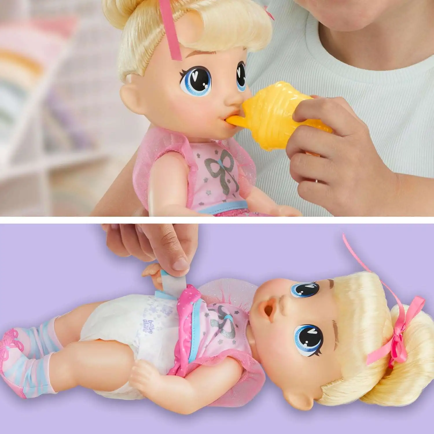 - I DRINK & WET MY DIAPER: Fill her sippy cup with water and she will really drink, then wet her diaper! Includes 2 Baby Alive diapers