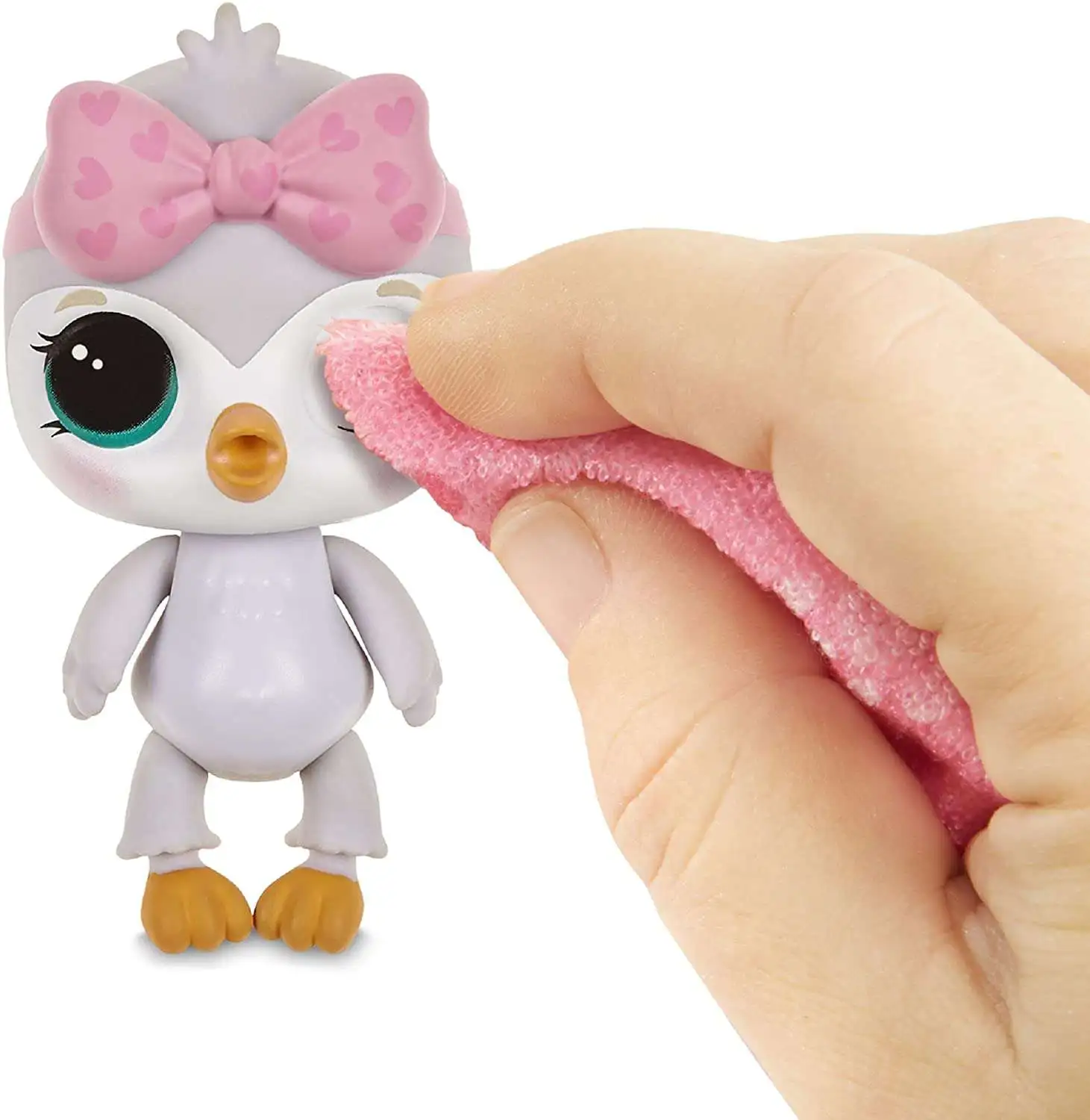 - Unwrap 8 surprises to discover a cute, sleep-eyed pet with a soft swaddle, bathtub, and keychain clip for on-the-go fun.