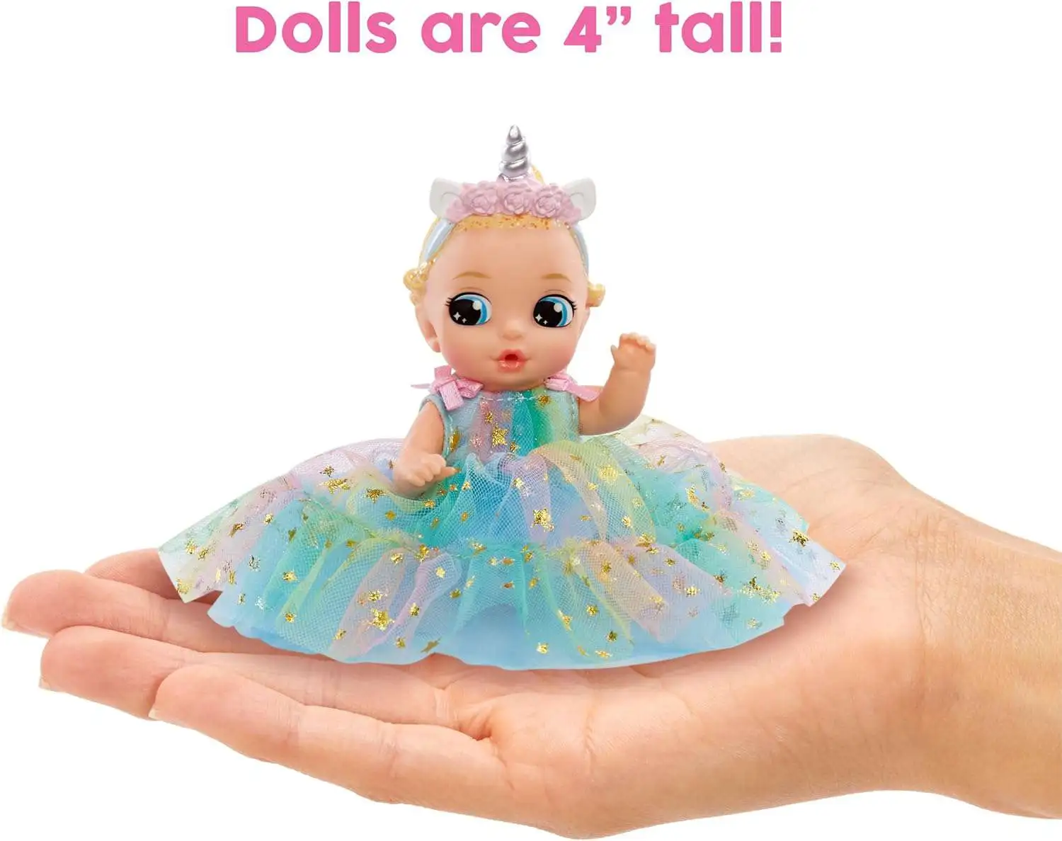 - Unwrap a bundle of surprises. Inside each storybook package, discover an adorable 4 inch collectible baby doll wearing a beautiful fantasy tale-inspired dress. Which baby will you get?