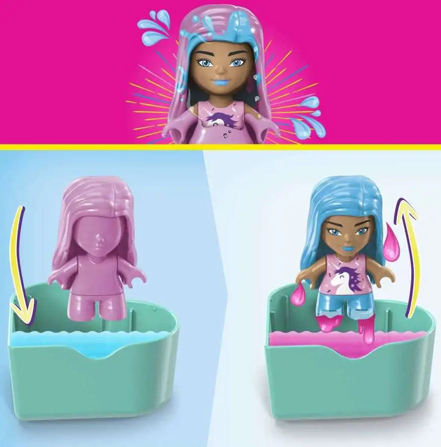 Building toy includes 3-piece buildable Barbie Color Reveal micro-doll, 16 bricks and accessories