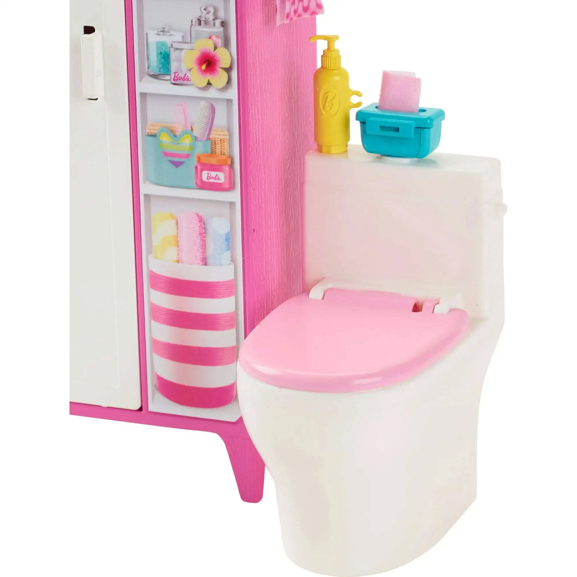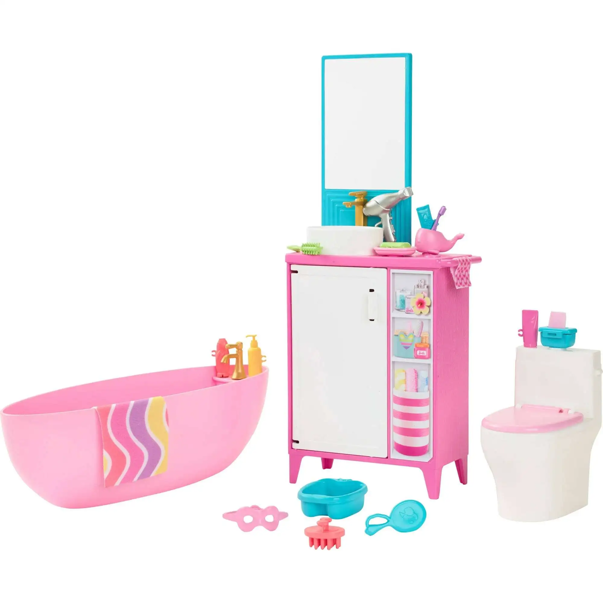 - Kids can pamper their favorite Barbie doll (not included) with a soak in the tub, then 'dry' her off with the towel and help her get ready with the toothbrush, hairdryer, brush, and more