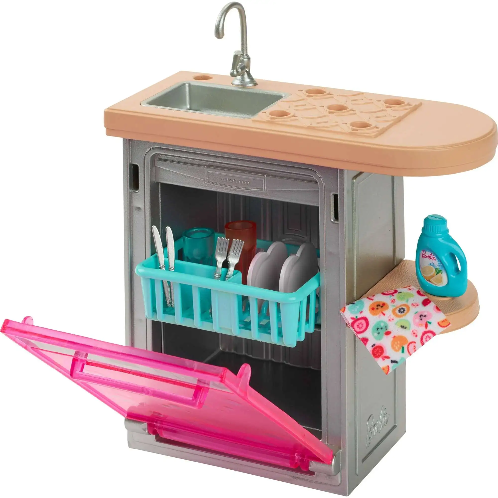 - Keep the Dreamhouse sparklin' clean with this Barbie World dishwasher set!