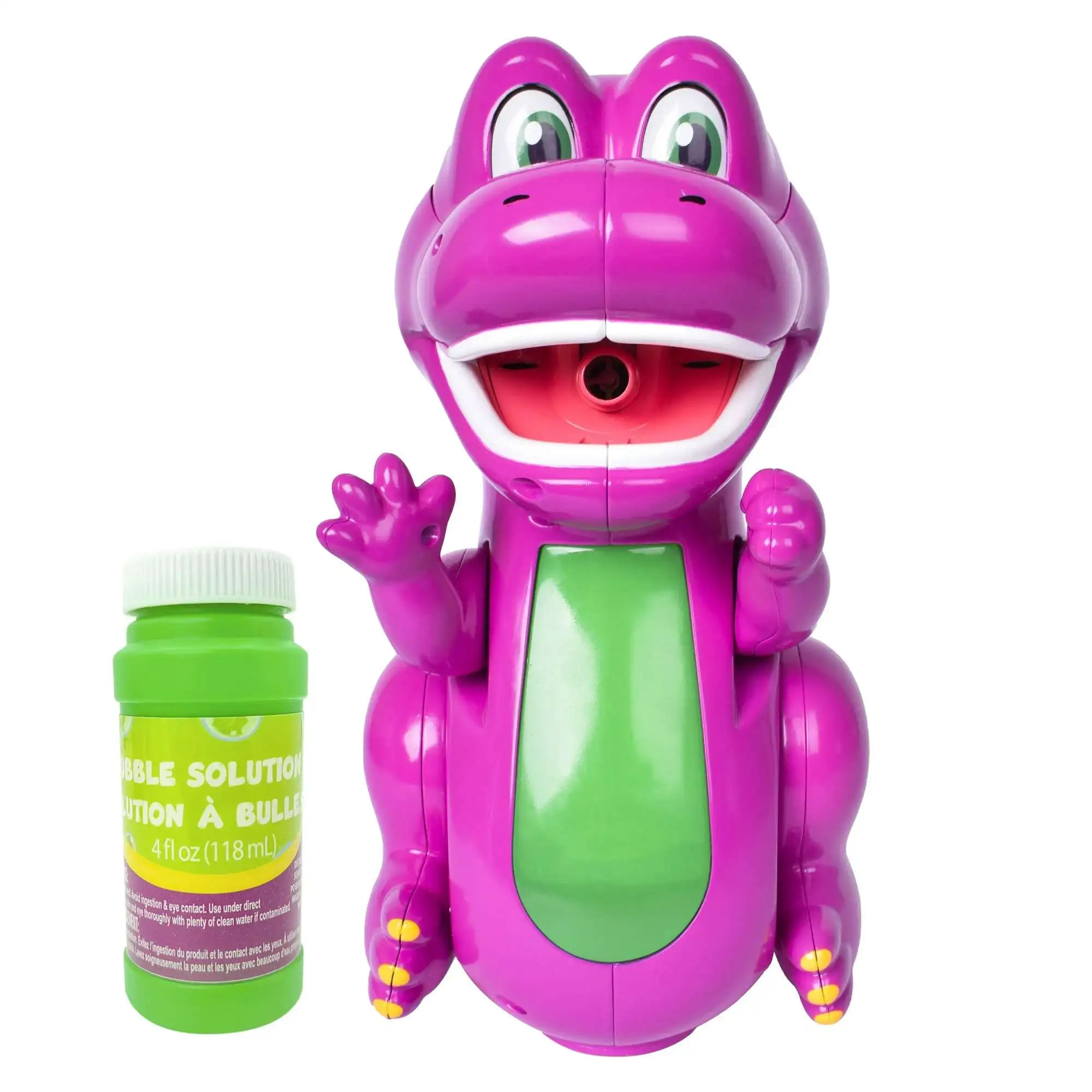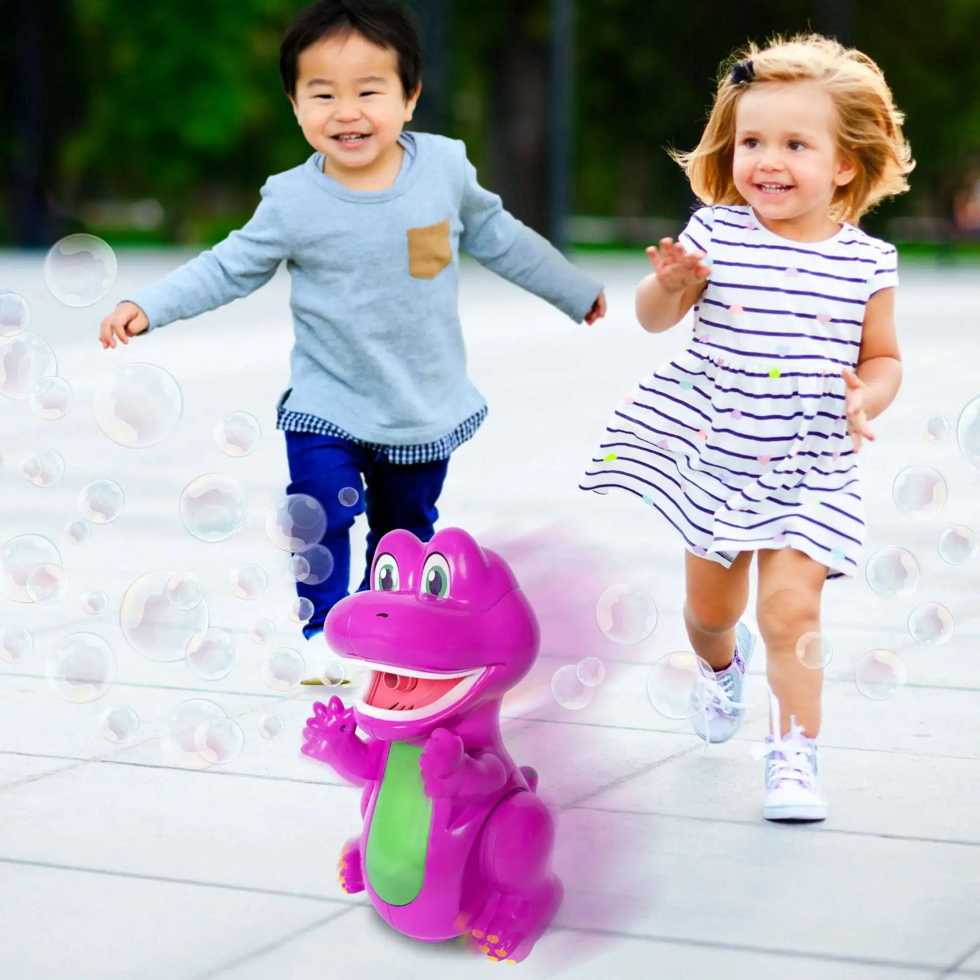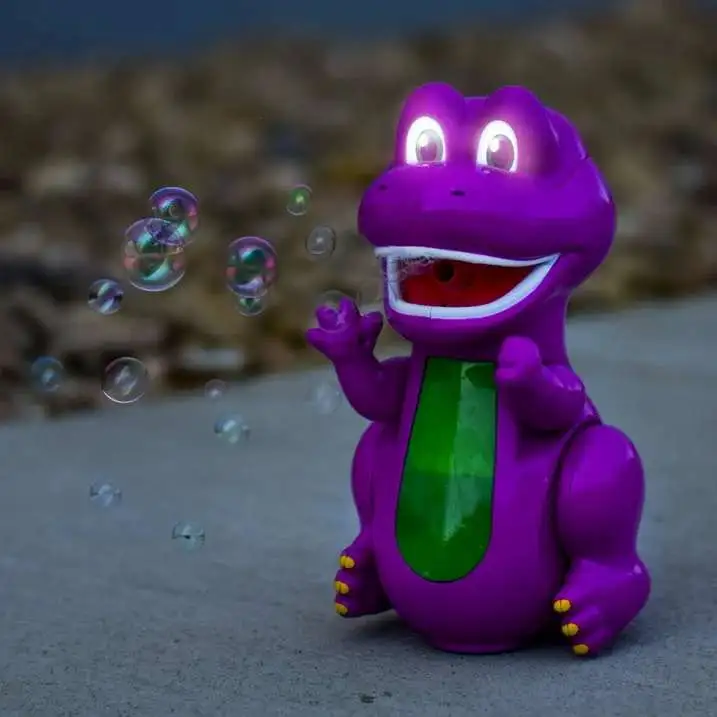 - EXCITING LIGHTS & SOUNDS: This beloved dinosaur lights up and joyfully says "Hey Friends" while creating bubbles and moving about.