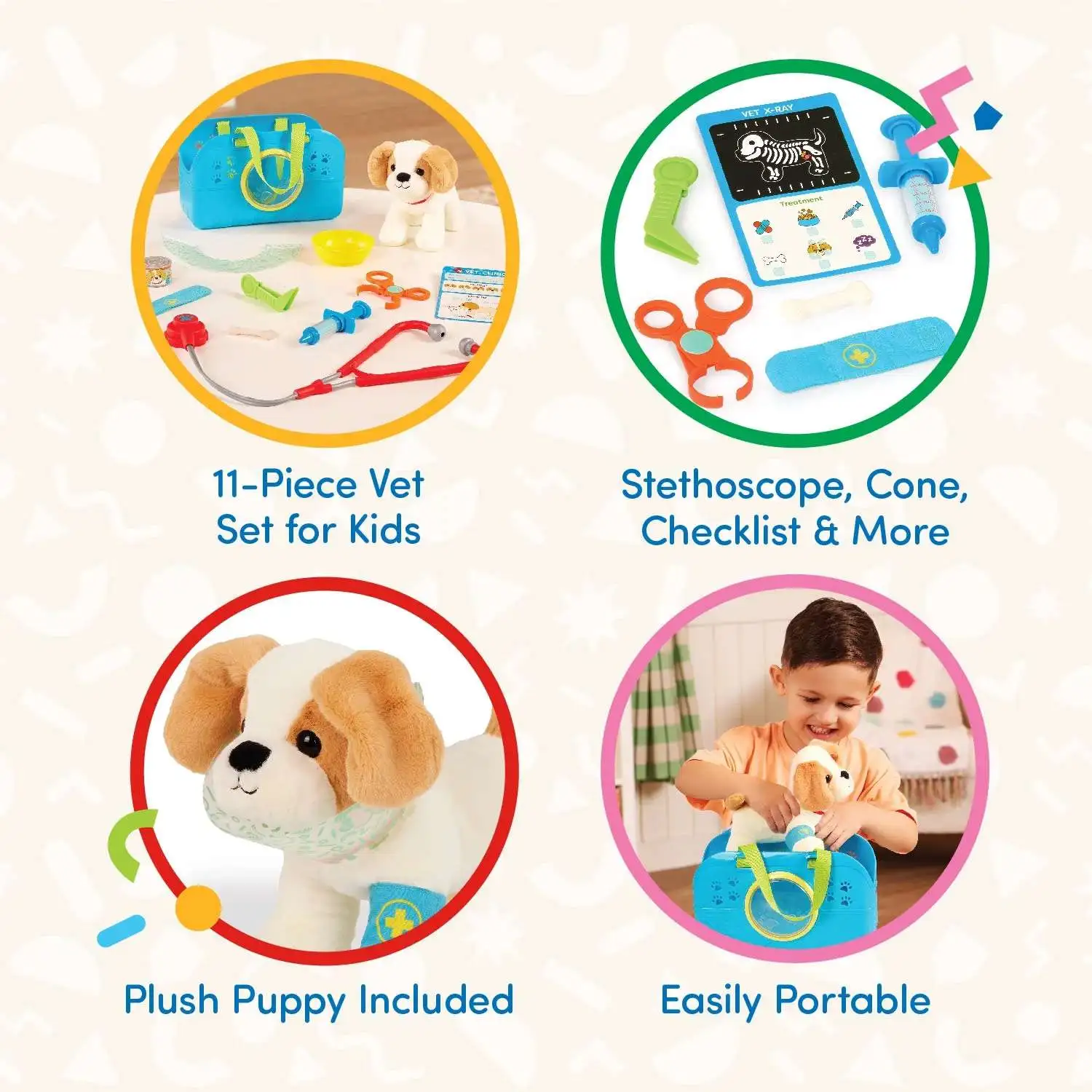 - Keep your plush pets happy and healthy with a portable vet set - plush puppy included