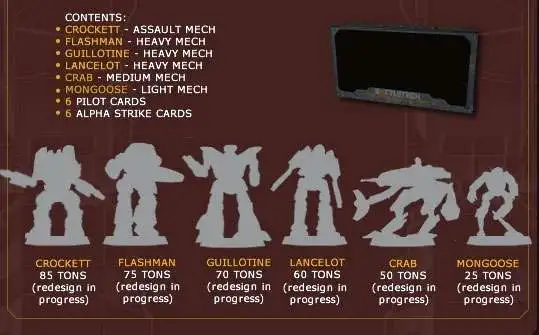 each Comstar level includes six 'mechs (no assembly required) along with six MechWarrior pilot cards and six Alpha Strike cards.