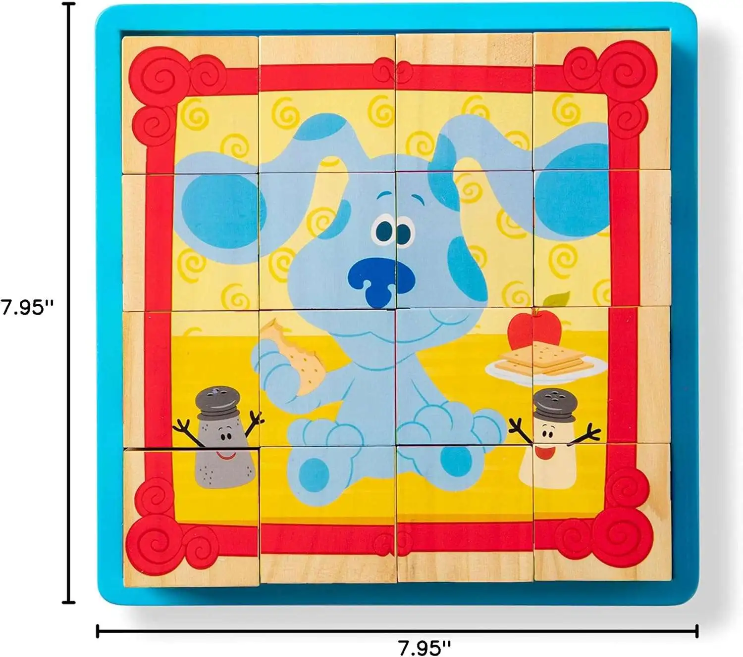 - reate 6 different Blue's Clues & You! puzzle scenes with 16 cube-shaped wooden puzzle pieces in a sturdy wooden tray