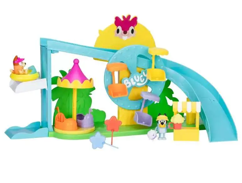 - Features an exciting Bluey-themed amusement park playset with rides like a merry-go-round, Ferris wheel, and roller coaster for endless imaginative fun.