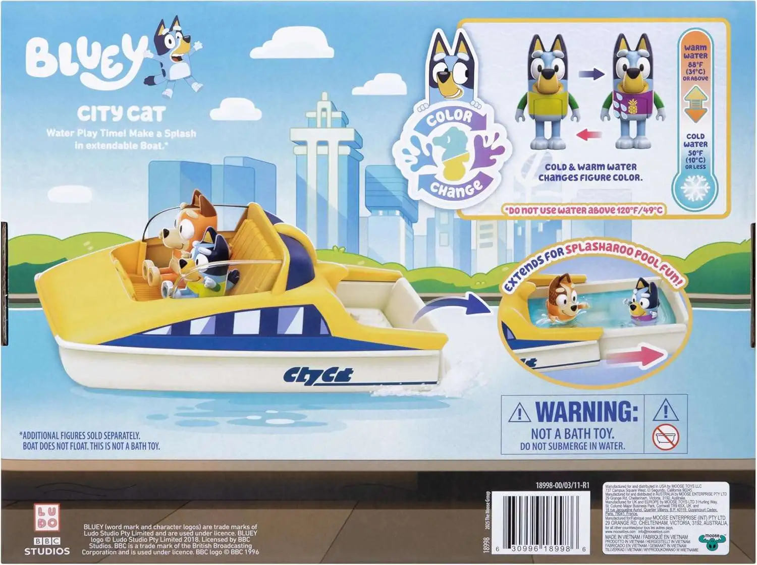 - Hop aboard the Bluey CityCat Playset for a fun and imaginative journey inspired by Brisbane's iconic ferry boats. This special playset brings Bluey's adventures to life, allowing kids to explore the waterways just like in Bluey's hometown. With its vibrant design and interactive features, it's the perfect toy for recreating favorite scenes from the show or inventing new ones.