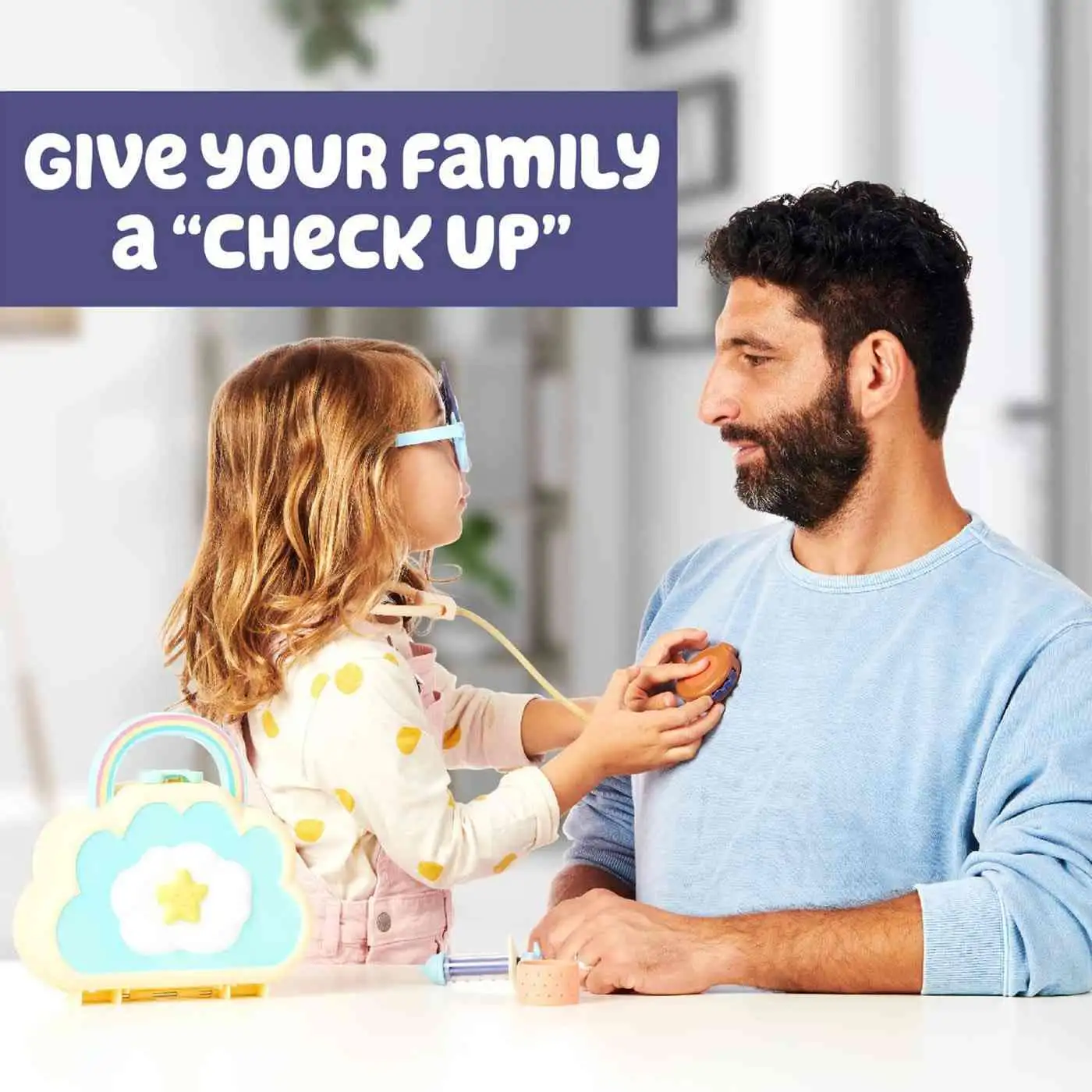 - Bring the fun and imaginative play home Bluey's Cloud Bag Doctor's Set!