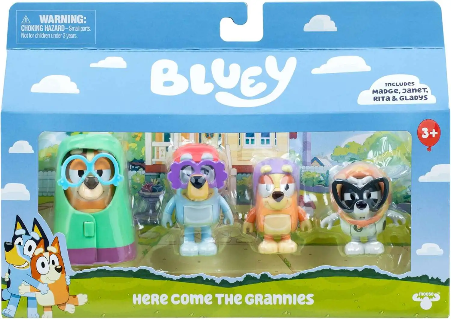 - The Grannies Figure 4-Pack includes Madge (Chilli), Janet (Bluey), Rita (Bingo), and Gladys (Muffin).