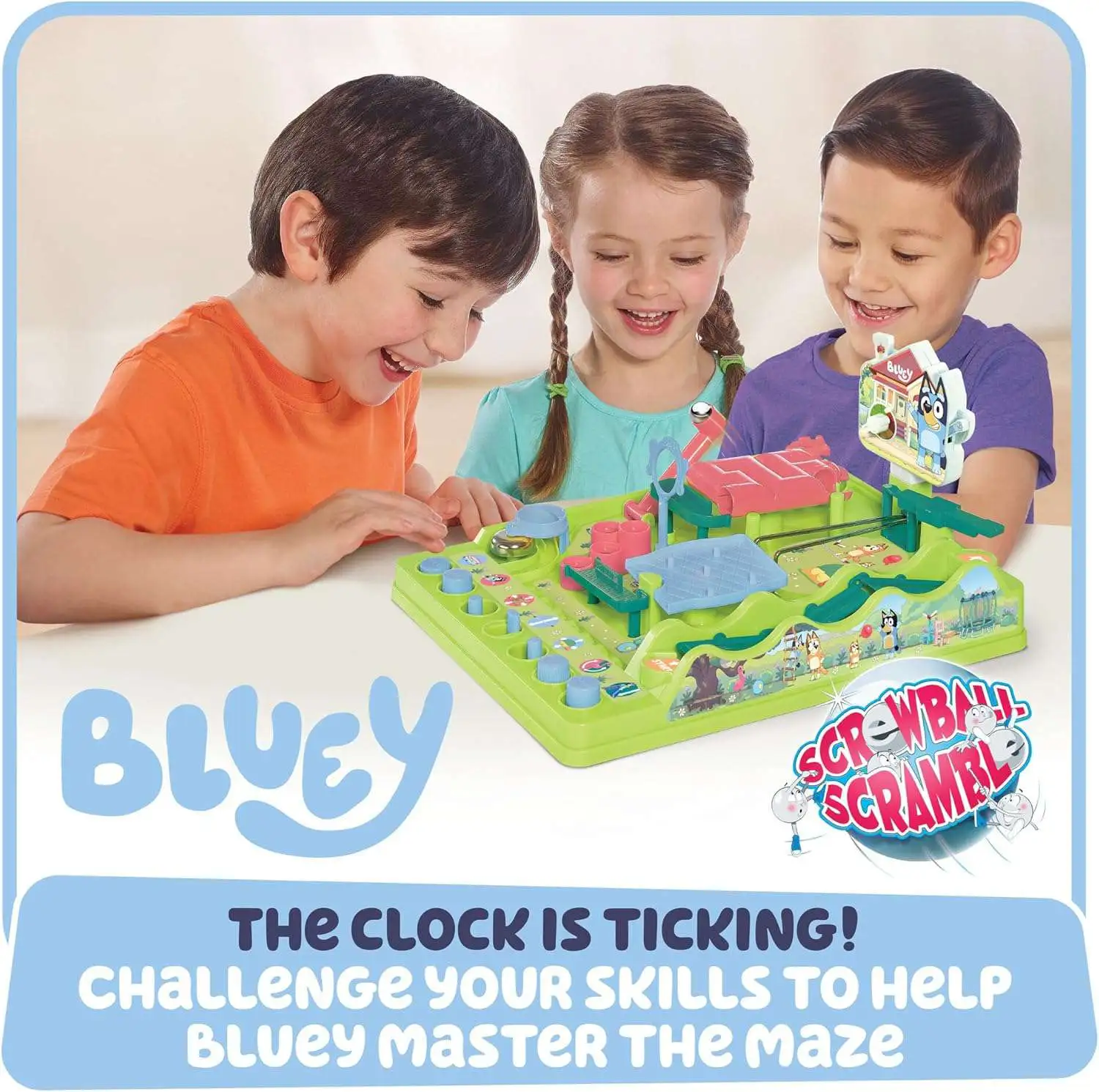 - Help Bluey Beat the Maze: Tilt, turn, twist, and bounce your way through the course-catch the marble with the magnetic crane, find your way through the tunnels, and race to the finish!