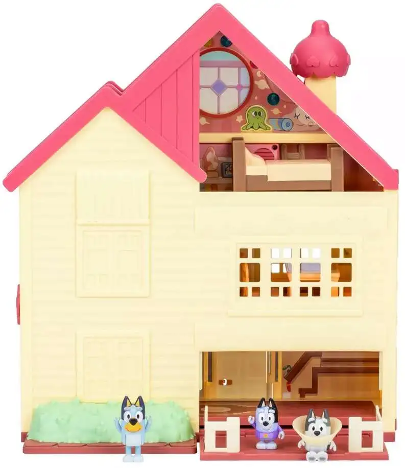 - The Bluey Ultimate Lights & Sounds Playhouse includes with 2.5" - 3" figures of Bluey and her cousins, Muffin and Socks.