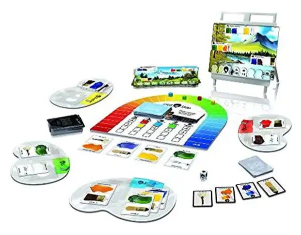 Game Board, 4 Palettes, 60 Art Supplies Cards, 24 Chill Cards, 11 Technique Cards, 12 Feature Markers, 4 Chill Cubes, 1 Bob Mover, 15 Double-Sided Paintings, 1 Easel, 1 Die, Instructions