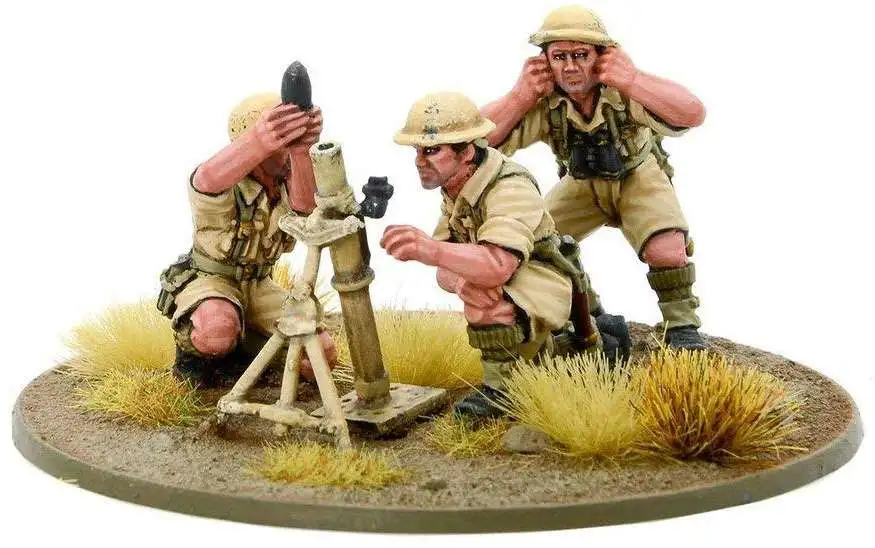 Bolt Action WWII Wargame Allies British 8th Army Medium Mortar Team Miniatures