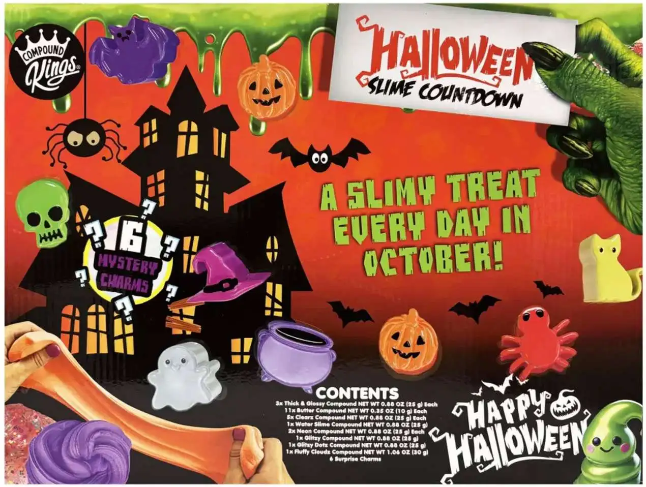 - Exciting Halloween-themed slime countdown calendar with 24 surprises to enjoy daily leading up to October 31st.