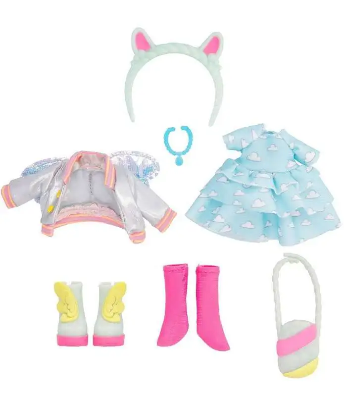 - INCLUDES: 1 doll, 2 pieces of clothing, a bag, a headband, a pair of matching shoes with a pair of socks and a necklace!