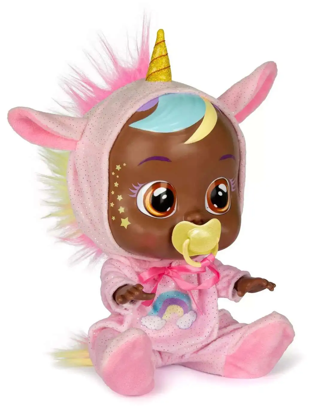 - Dressed in a changeable unicorn onesie, encouraging imaginative play.
