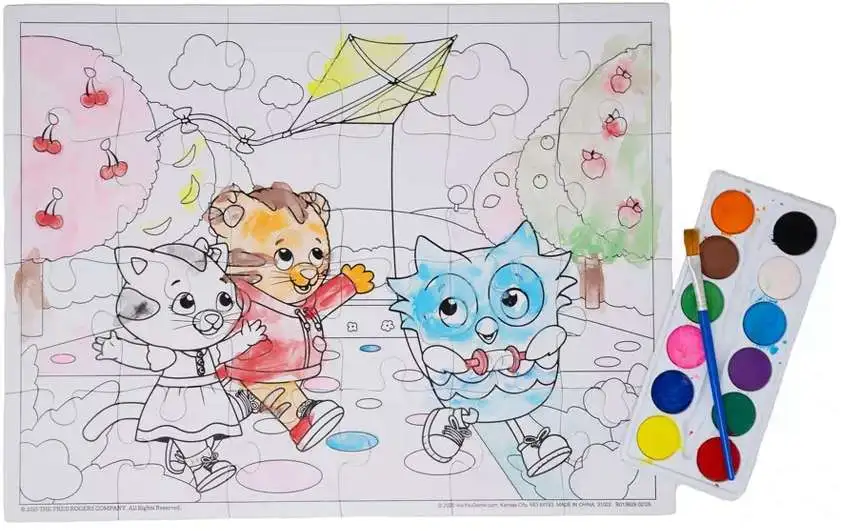 Once assembled, kids can use the included 12 watercolor paints and paintbrush to color in the puzzle however they like. Follow the included full-color guide, or let their imagination bloom as they create their own version of Daniel's enchanted garden.