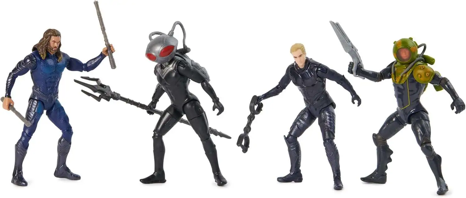 - 4 AQUAMAN FIGURES: Collect all 4 iconic Aquaman figures, including Aquaman in Stealth Suit, Black Manta, Orm, and Manta Man figures with unique accessories for thrilling adventure!