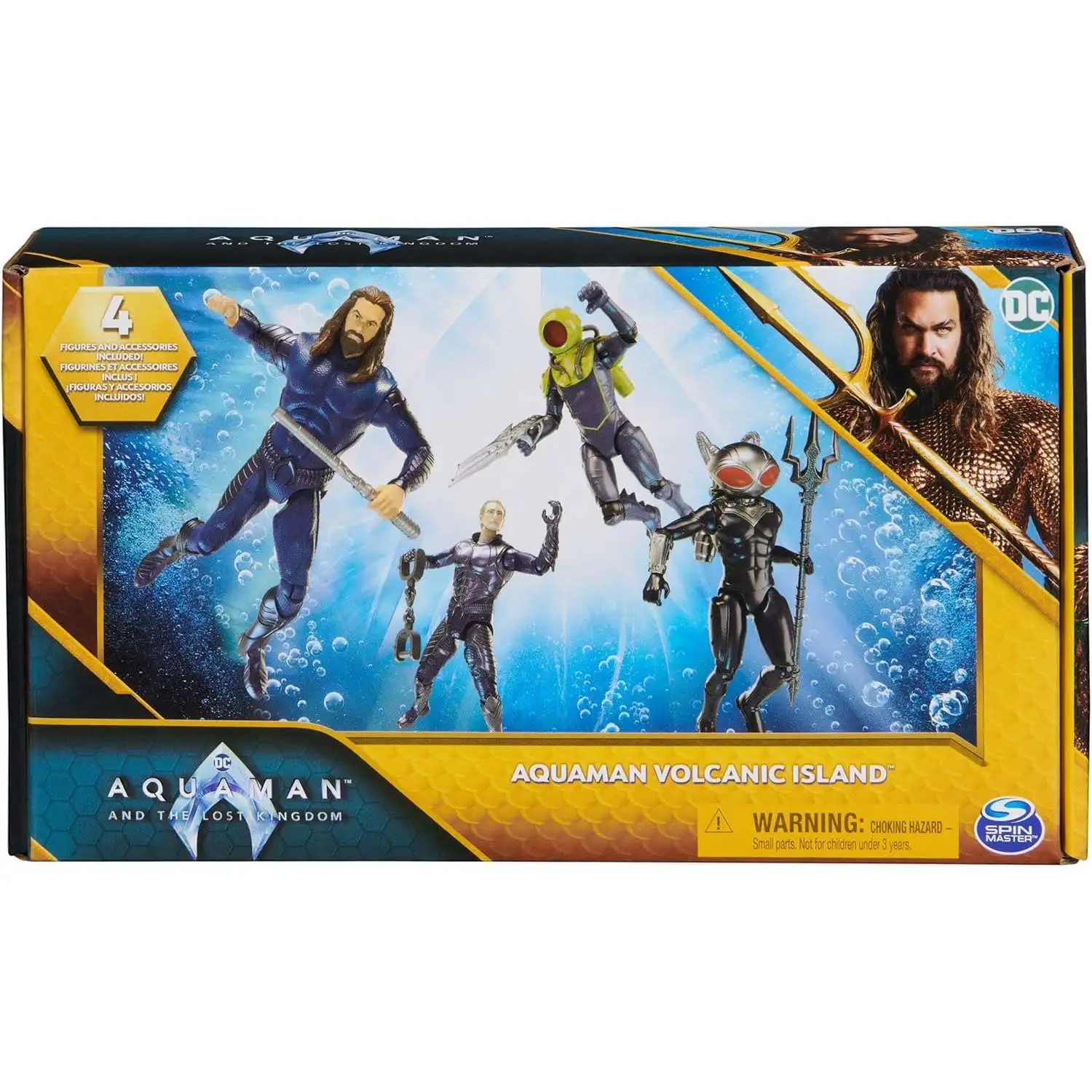 - This Aquaman Volcanic Island Pack includes 4 exciting 4-inch action figures, each with an accessory, perfect for recreating Aquaman movie-inspired adventures!