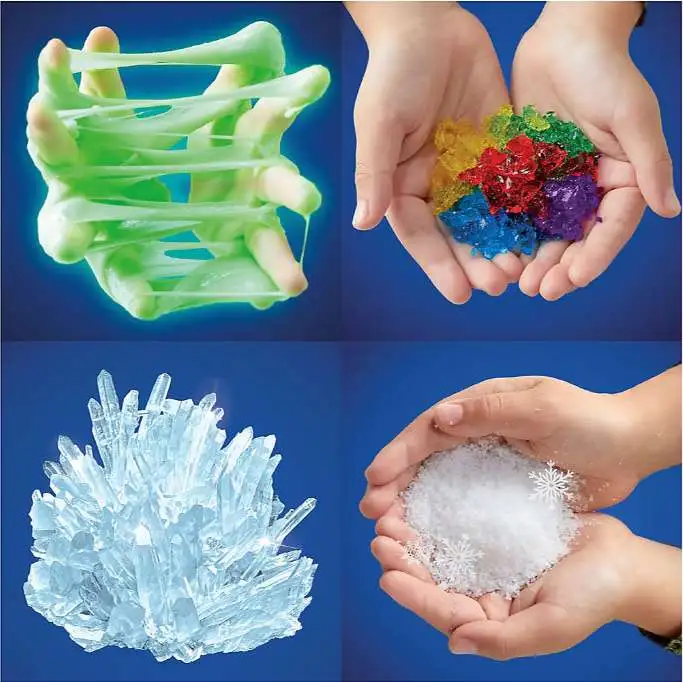 - EXCITING HANDS-ON SCIENCE: Engage in hands-on learning with 5 sensational chemistry experiments including Glow Slime, DIY Bouncy Ball, Glow Crystals, Jelly Crystals, and Instant Snow.
