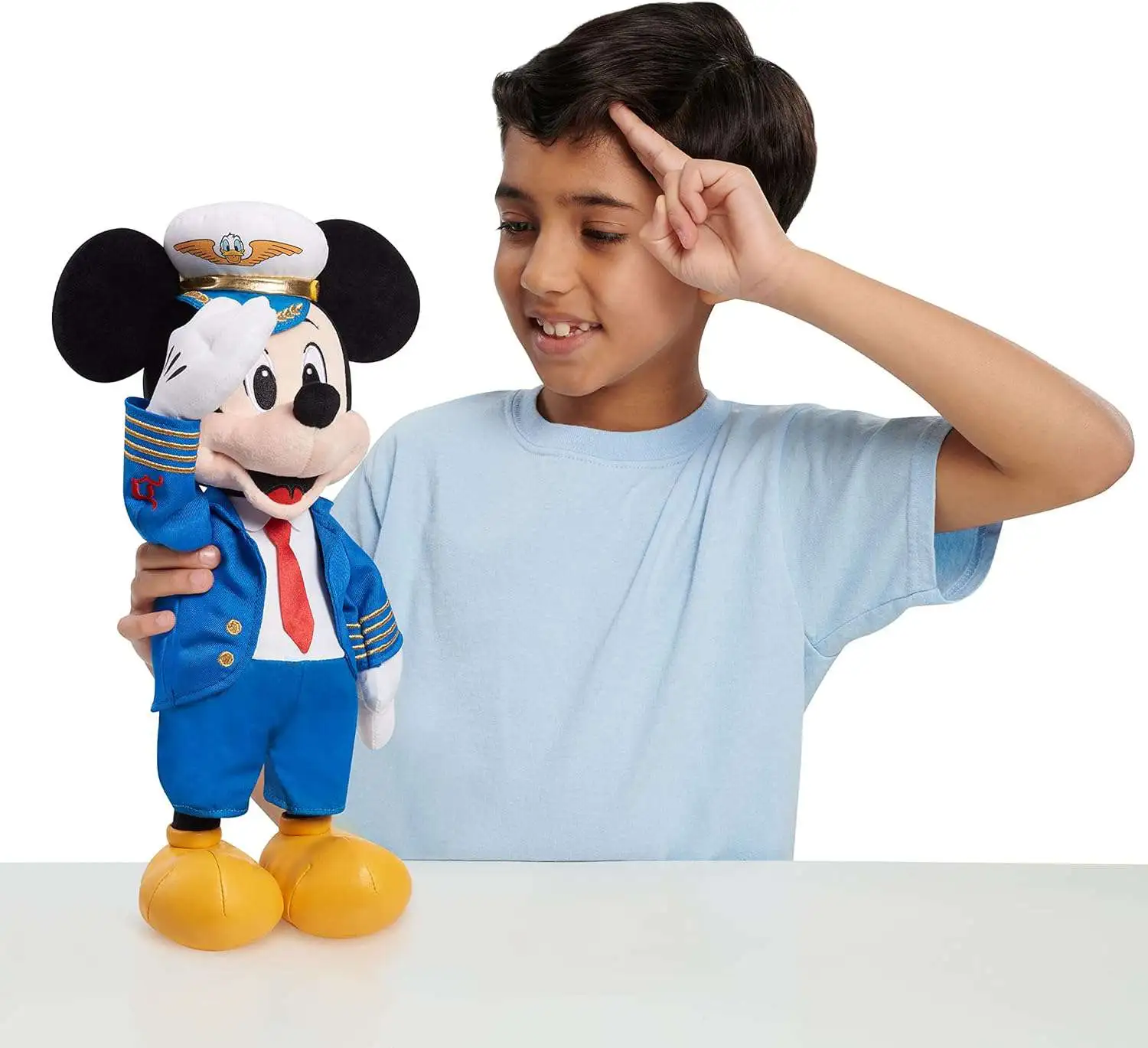 - Standing 15 inches tall, Pilot Mickey Mouse is made with velvety plush and wears a mixed-fabric uniform with a gold-trimmed blue blazer, matching shorts, and a cute captain's cap with gold fabric trim.