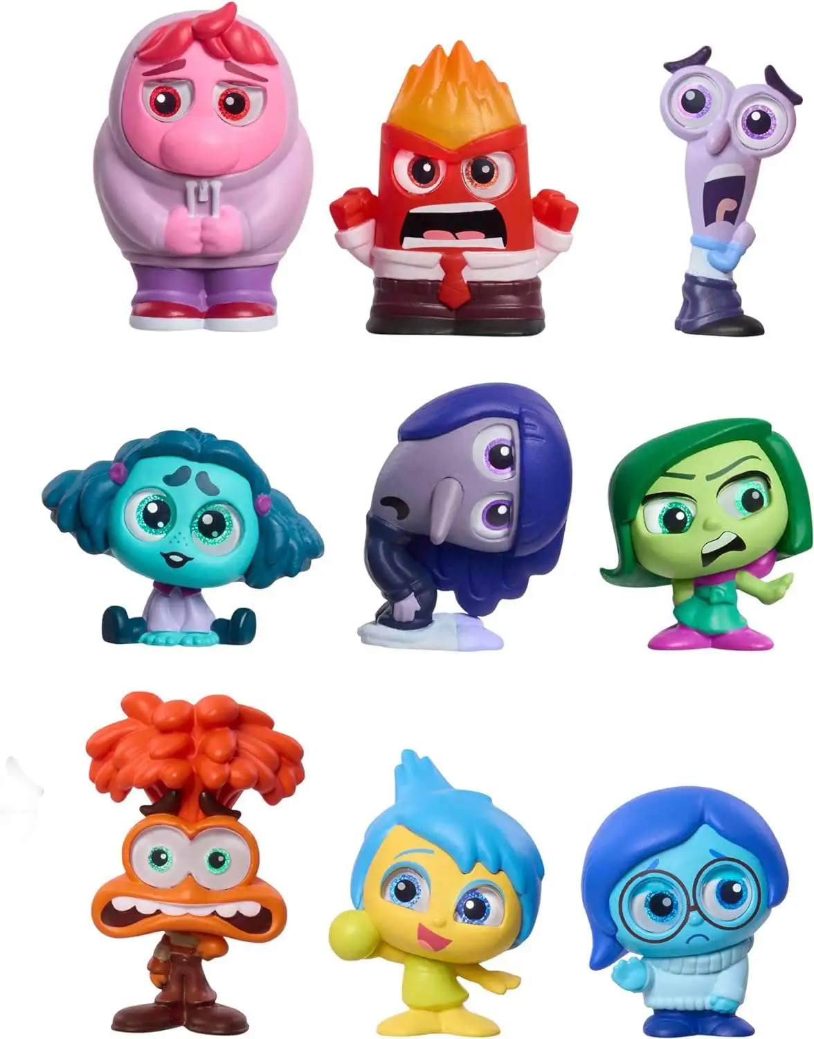 - A Beloved Cast of Characters. This beautifully designed collector set contains 9 exclusive figures, including Disney and Pixar's Joy, Anger, Fear, Sadness, Anger, Disgust, Embarrassment, Anxiety, Envy, and Ennui.