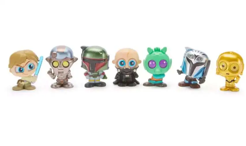 - Includes 7 Doorables mini figures: 5 mystery figures plus 2 exclusive figuresunmasked Darth Vader and metallic Boba Fett.