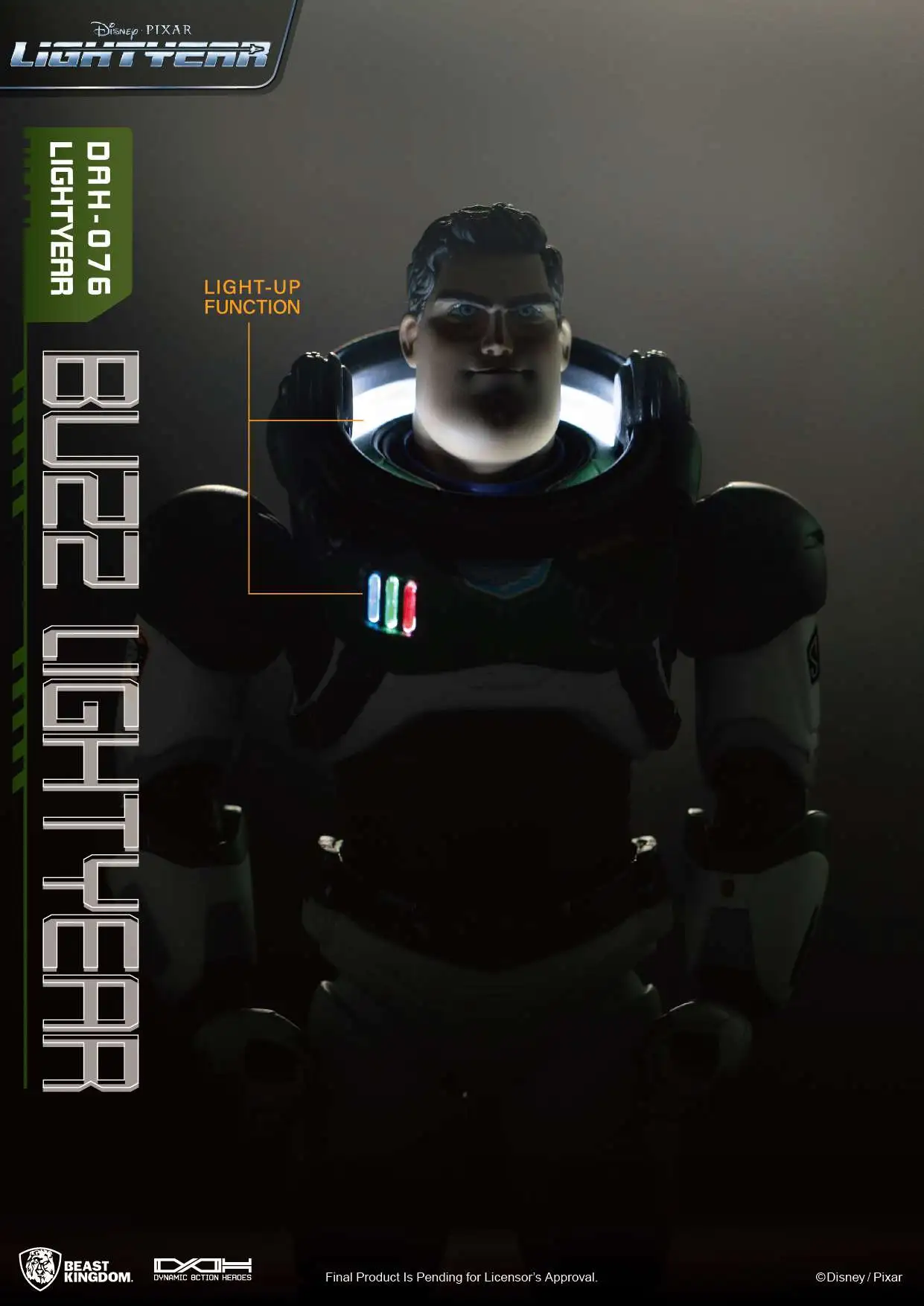 Beast Kingdom's highly articulable DAH (Dynamic 8action Heroes) figure range is ready to take you 'To Infinity and Beyond' with the release of the Buzz Lightyear DAH-076 figure. Following the more realistic take on Buzz, the DAH features 20 points of articulation and two highly detailed head sculpts to match. The detailed 'Alpha' armor suit features the detailed emblems and color schemes from the movie. The DAH set also includes an arm-mountable laser gun and a set of four replaceable pairs of hands to really get Buzz's salutes on point! The built LED lights also give fans ample ways to show off the chest indicators for the ultimate effect. Not forgetting the robotic cat Sox and a cat carrier are also both featured in the set.