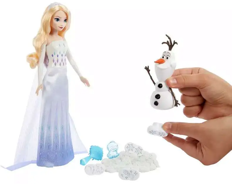 - Inspired by the animated characters in the movie Disney Frozen 2, this Elsa doll and Olaf figure are ready for adventures with Magic Moldable Snow!
