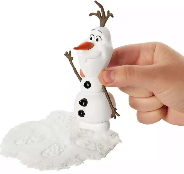 - Olaf figure turns into a stamper! Kids can attach 4 different stampers to the bottom of Olaf and make prints in the "snow" (white moldable sand)