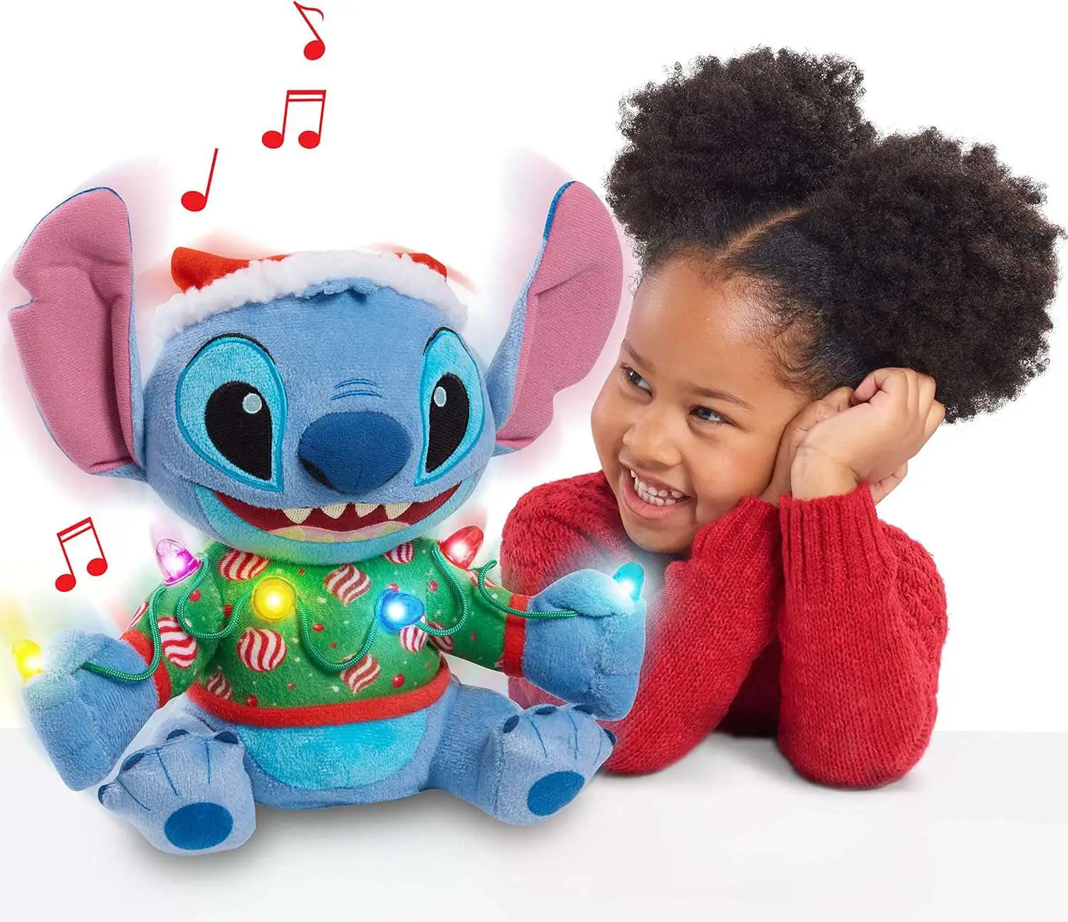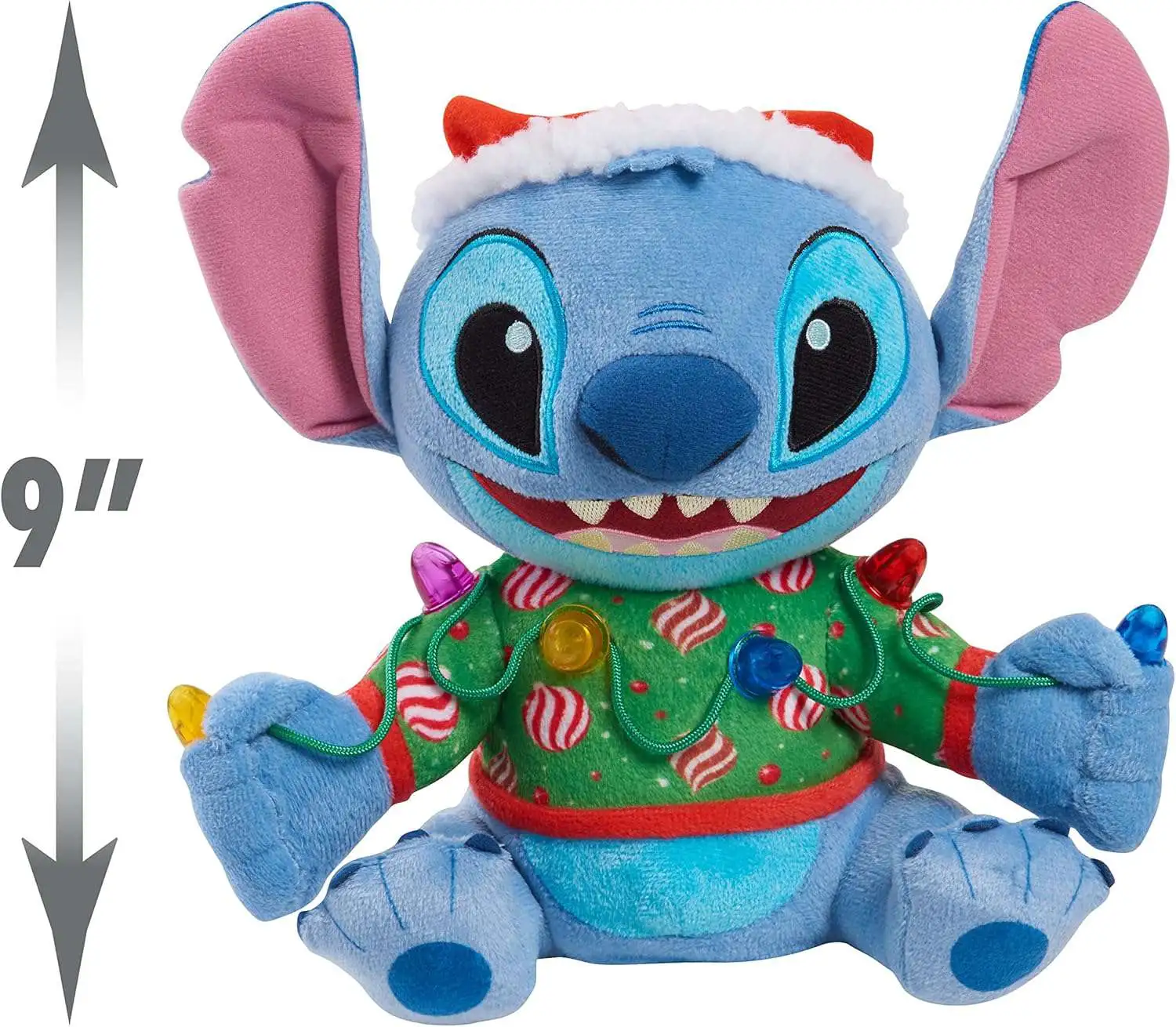 - Perfect Addition to Any Stuffed Animal Collection: Sparkle and shine this season with the super snuggly Disney Holiday Lights Feature Plush Stitch - complete with music, lights, and movement.