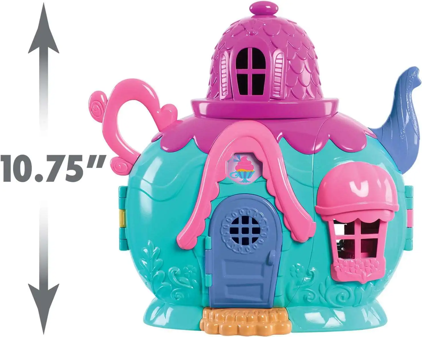 - Exclusive Set Includes: 1 multi-level teapot-shaped bakery, 2 articulated scented figures, 1 spinning mixer, 1 refrigerator, 1 bed, 1 bakery table, 2 teacups, teapot, 2 chairs, 1 table, and 3 play food accessories.