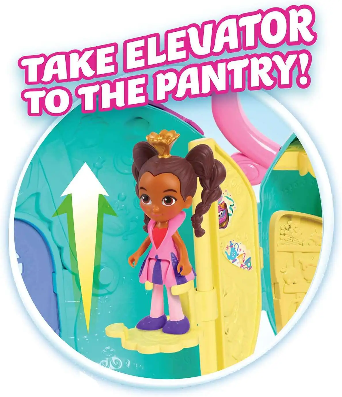 - Kids can hear Alice's phrases and sound effects when they push the button on the floor or twirl Alice and Princess Rosa on the spinning floor.
