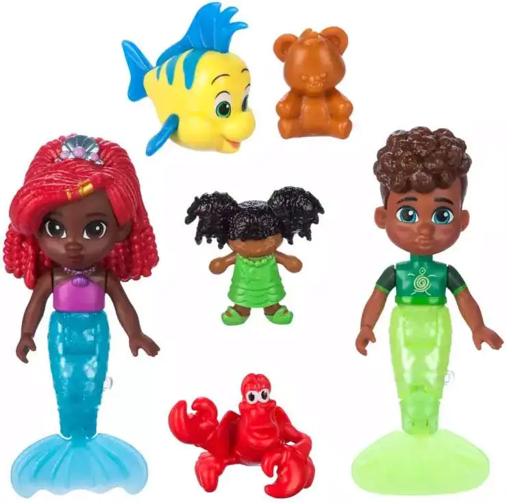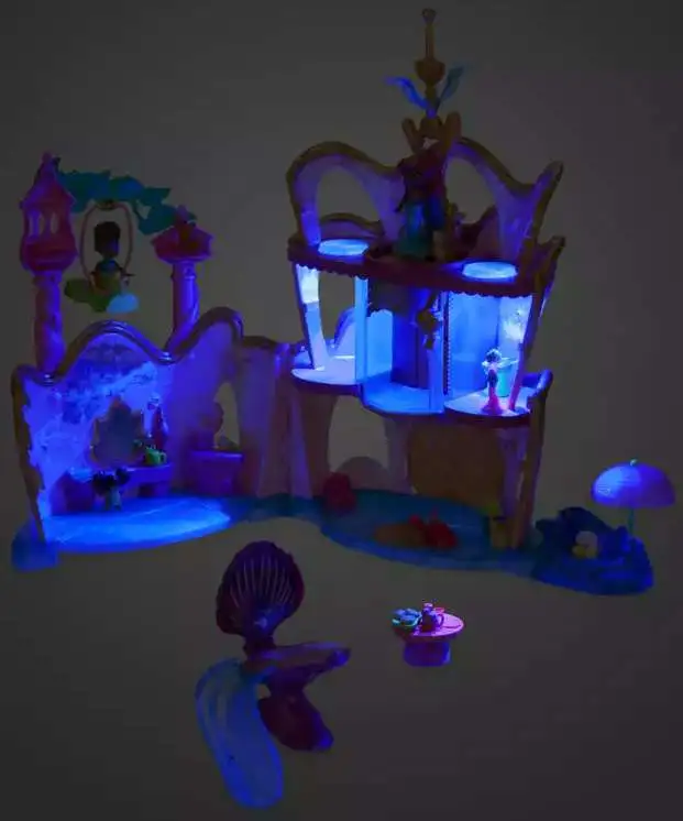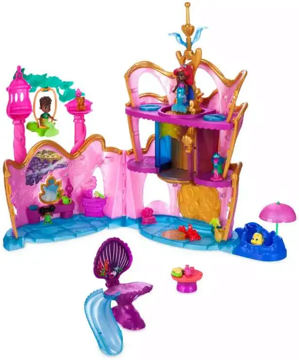 - Includes Palace play set, Ariel and Fernie figures, Flounder and Sebastian, bed, dresser, table, microphone stand, drum, umbrella, music box, teddy bear, doll, brush, basket, coral, two drinks and pineapple
