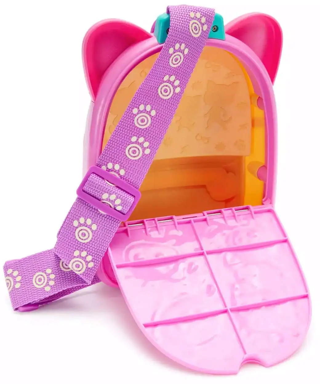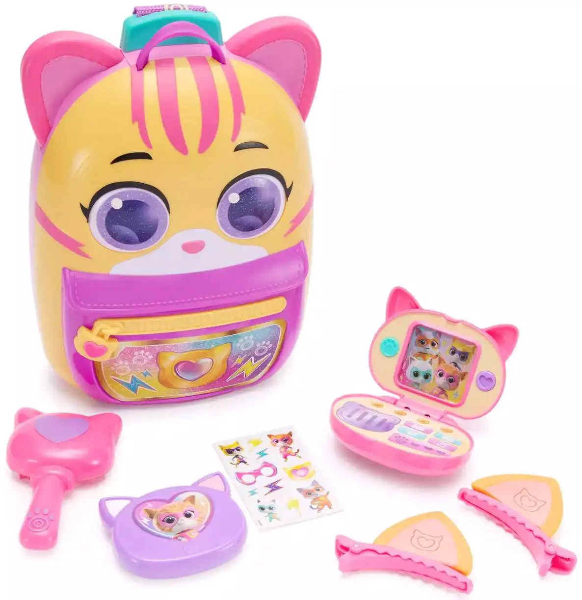 - Seven-piece set includes Su-Purr Backpack, Cat-o-flauge play tablet, compact mirror, brush, two clip-on cat ears and a sticker sheet