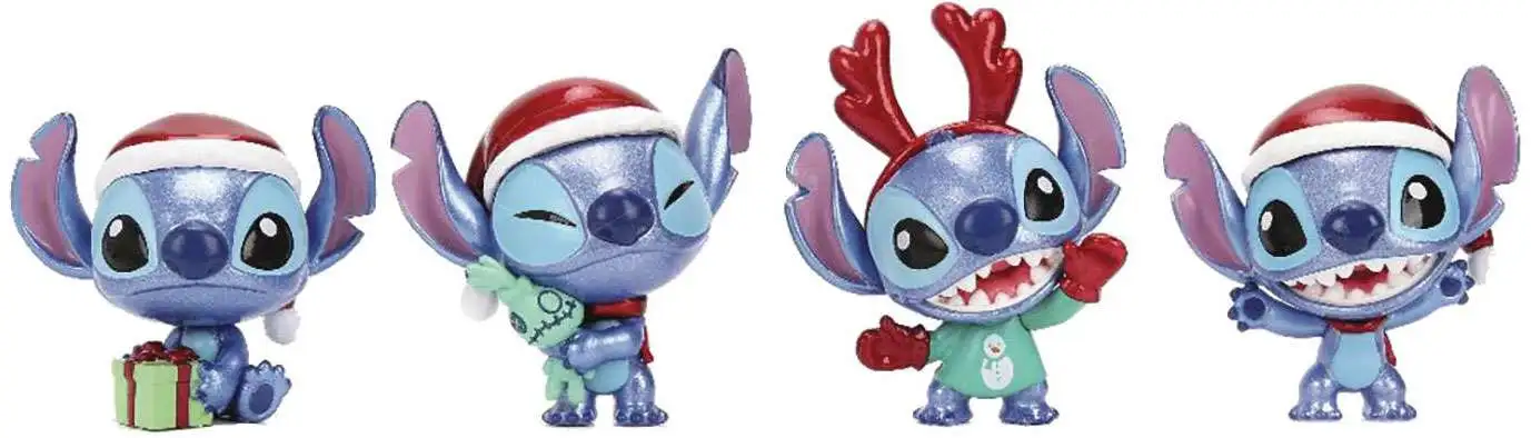 - Set includes four 2.5-inch diecast figures of Stitch in festive holiday designs.