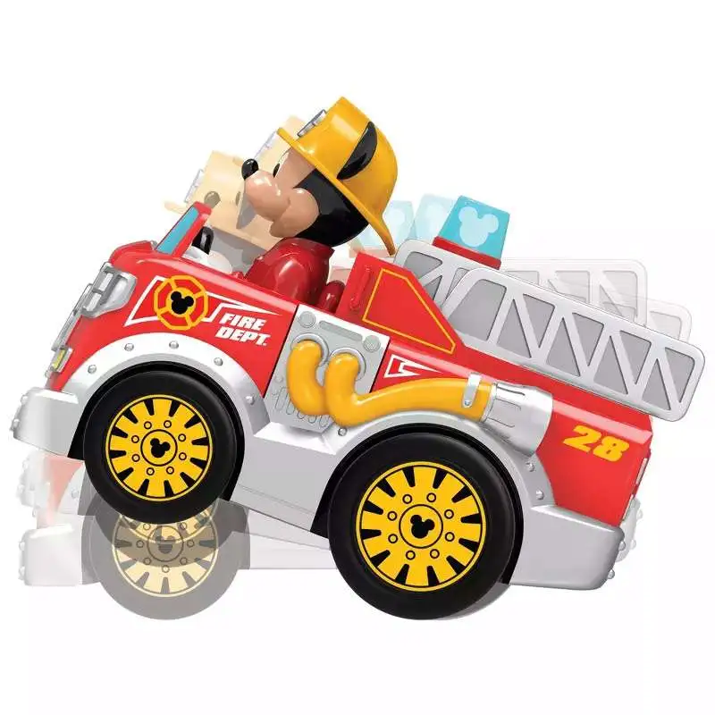 - Watch as Mickey's Fire Truck performs fun stunts like spins and wheelies. Kids will be amazed as they guide their truck through exciting tricks, turning every playtime into a mini performance show!