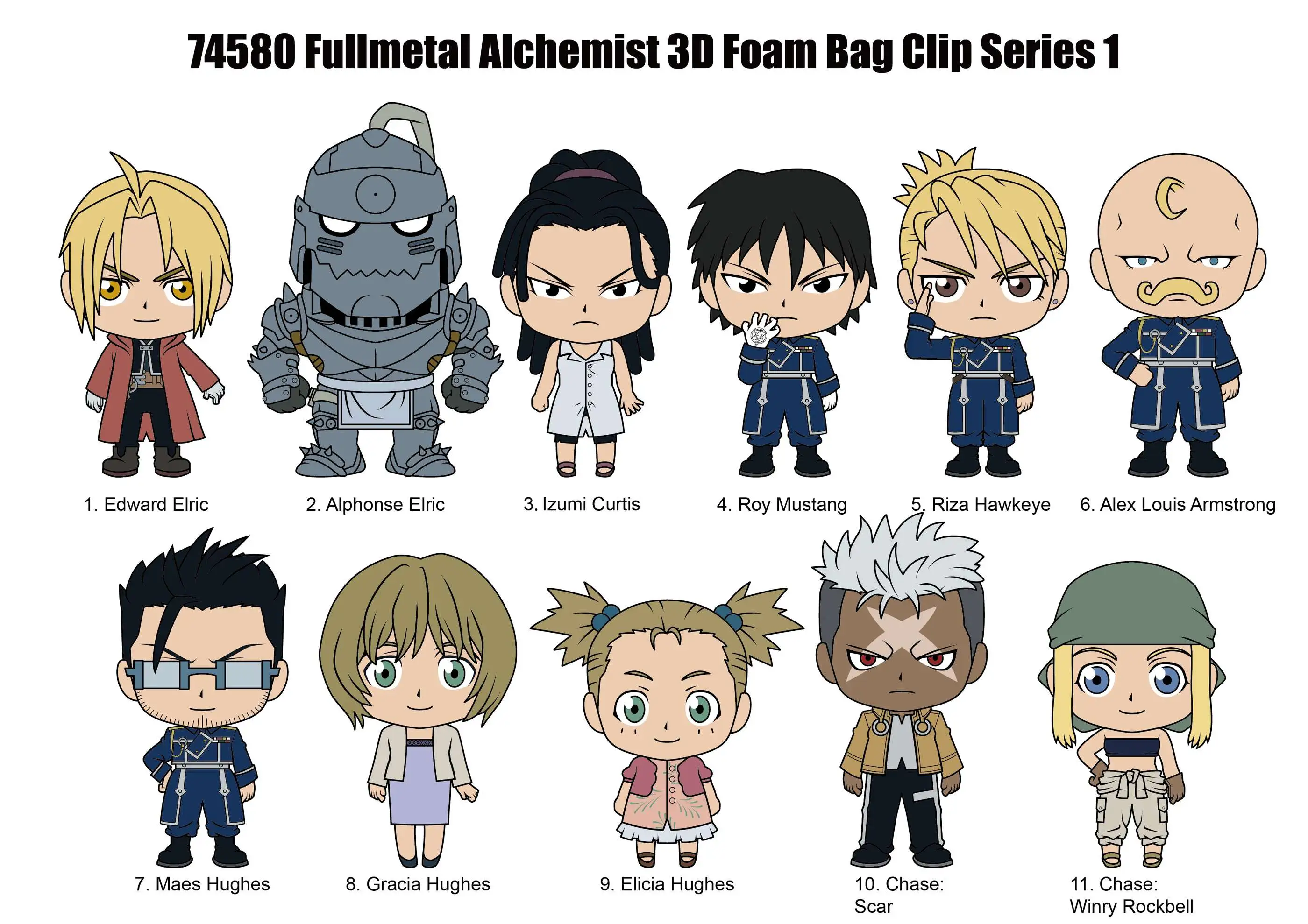 - Collect 24 blind-bagged 3D foam keyrings featuring characters from Fullmetal Alchemist: Brotherhood Series 1 & 2.