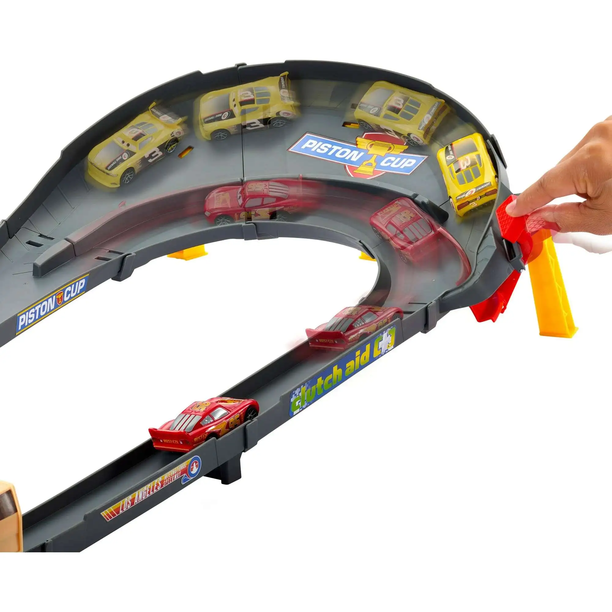 - Launch racers on the track with the kid-powered booster and use the switch to change lanes at the precise moment needed to take the lead!