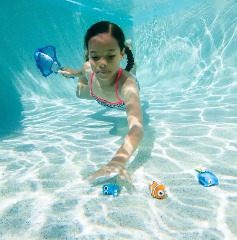 - Toss the dive characters into the pool then swim to retrieve them with the Mr. Ray net - each character floats at different depths, adding to the fun of catching the characters.