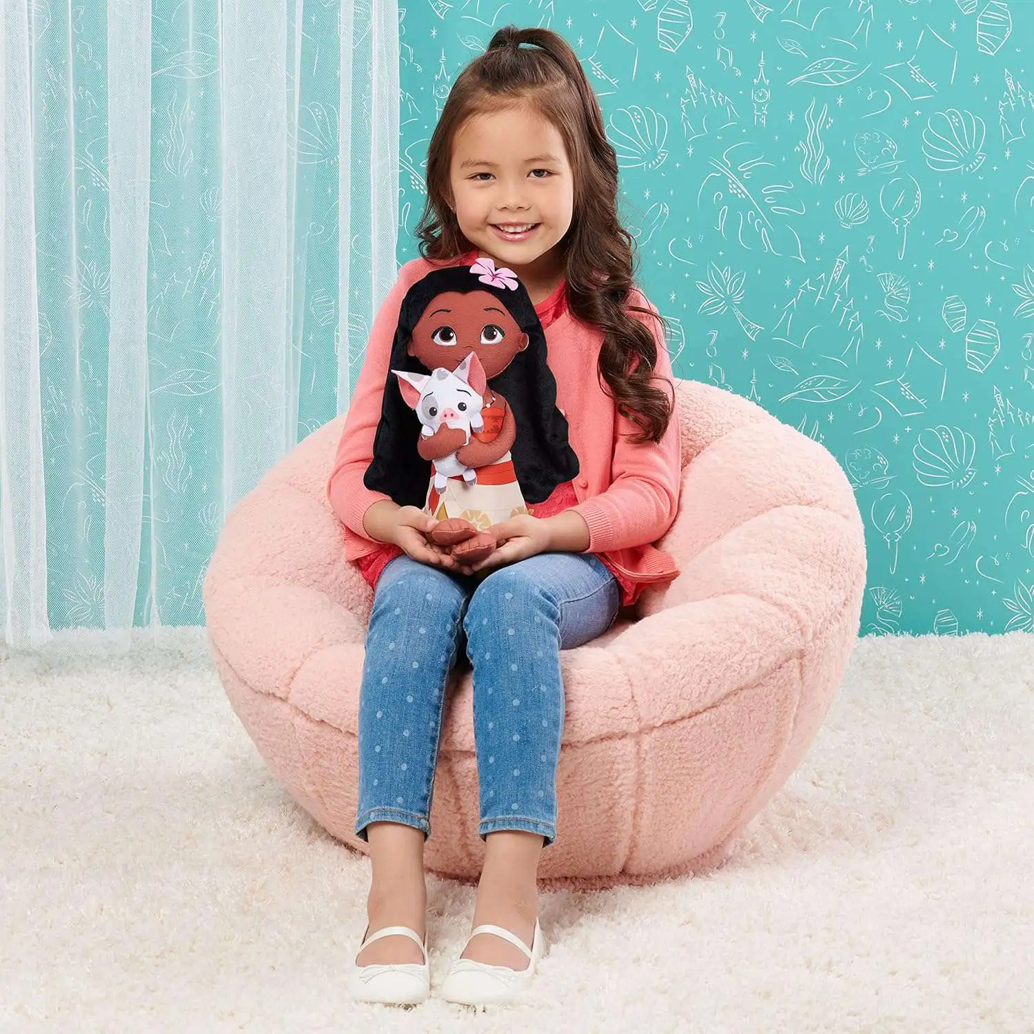- Disney Princess 2-in-1: The Disney Princess Lil' Friends Plush Moana & Pua features a Princess Moana plush doll holding a mini Pua the pig plushie.