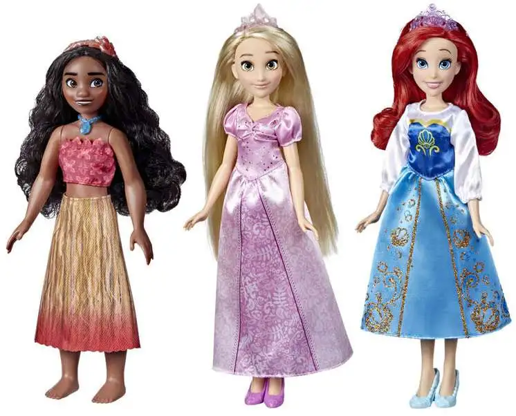 - DISCOVER FASHION FUN WITH THE DISNEY PRINCESS CHARACTERS: Set includes dolls of Ariel from Disney's The Little Mermaid, Moana, and Rapunzel from Disney's Tangled