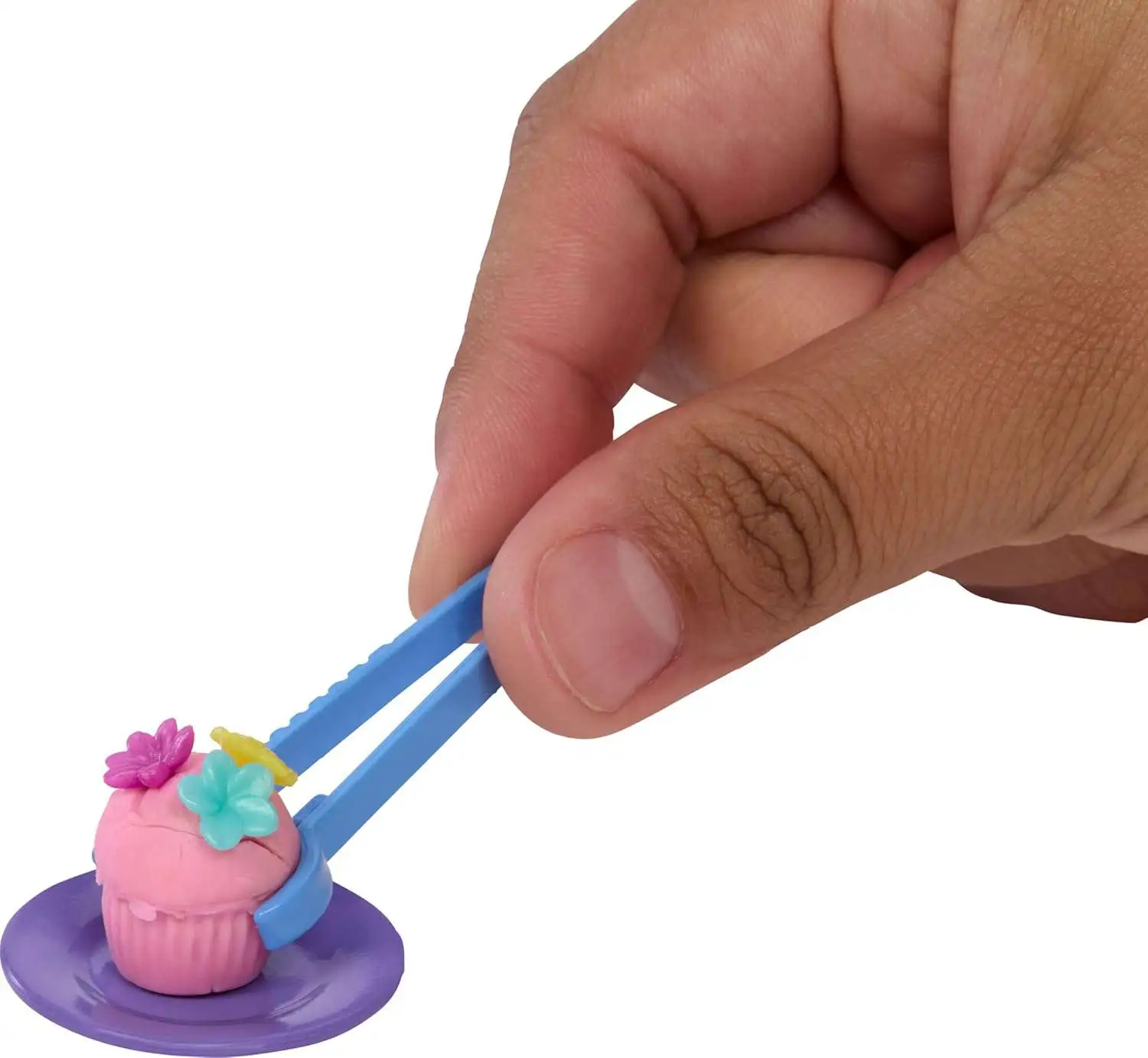 - Set includes a container of pink dough and 10+ pieces to use with it, including a cupcake mold, cookie molds and flower accessories for decorating.