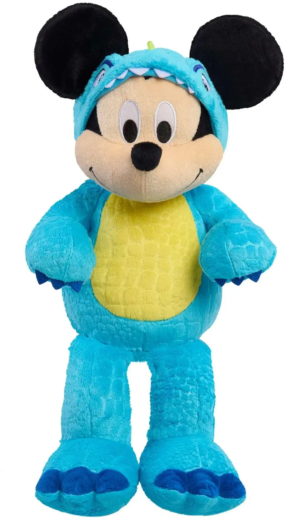- Press to Activate: Press Disney's Mickey Mouse's chest to activate phrases, dino roars, and laughs so silly, the plushie shakes as it giggles.