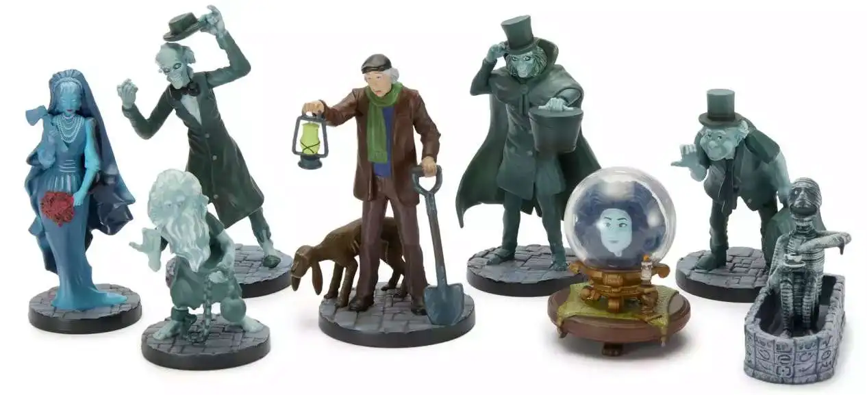 - Set of eight fully sculpted figures: Constance Hatchaway, Ezra, Gus, Phineas, Mummy, Caretaker and dog, Hatbox Ghost, Madame Leota.